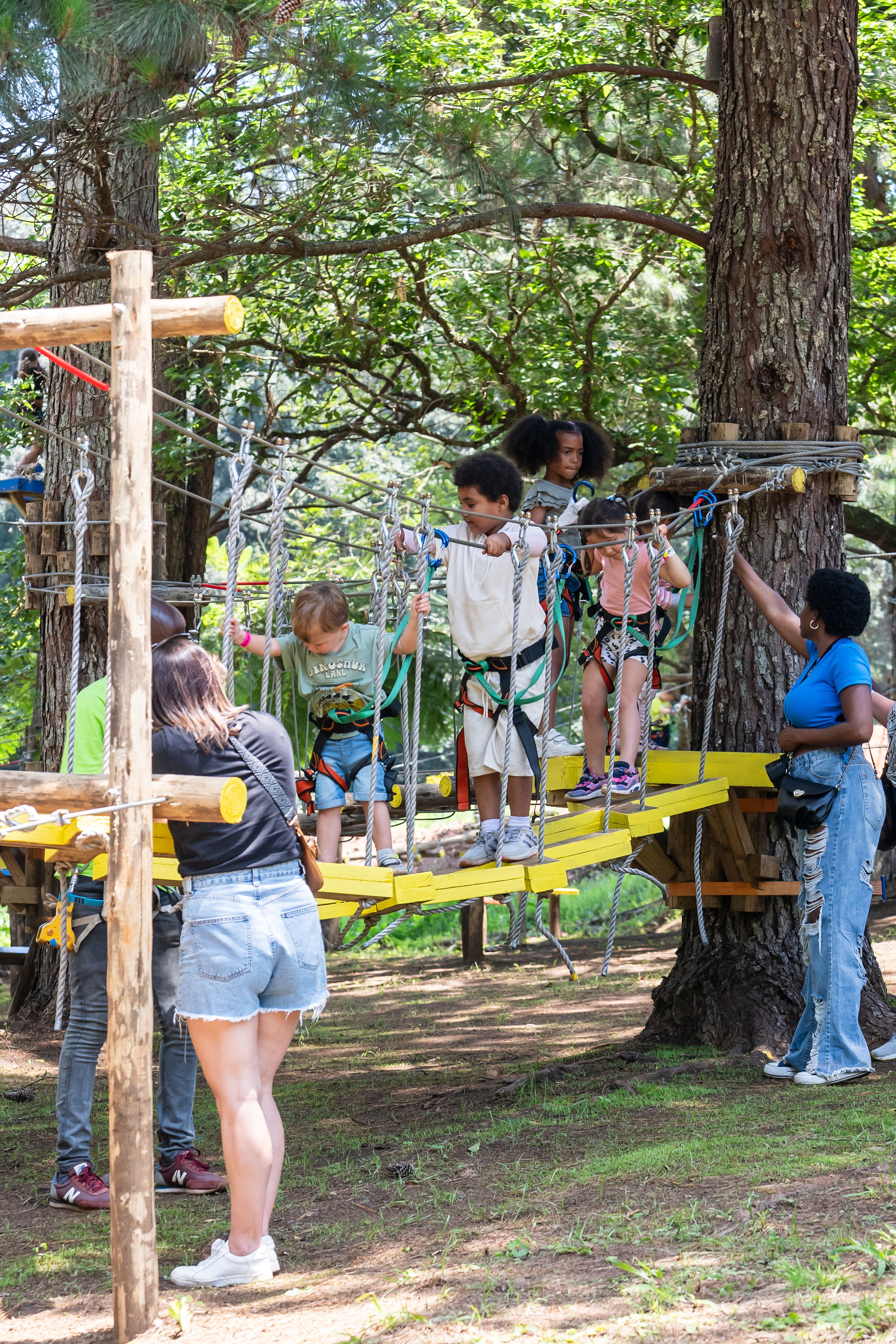 Le parcours Jaune est idéal pour initier les enfants de 3 à 6 ans au plaisir de la hauteur. Installé à faible altitude et équipé de jeux adaptés à leur taille, il leur permet d’évoluer en confiance : ponts rigolos, mini-tyroliennes, tunnels suspendus… Chaque atelier est pensé pour stimuler l’équilibre, la coordination et surtout le plaisir de grimper en toute sécurité.