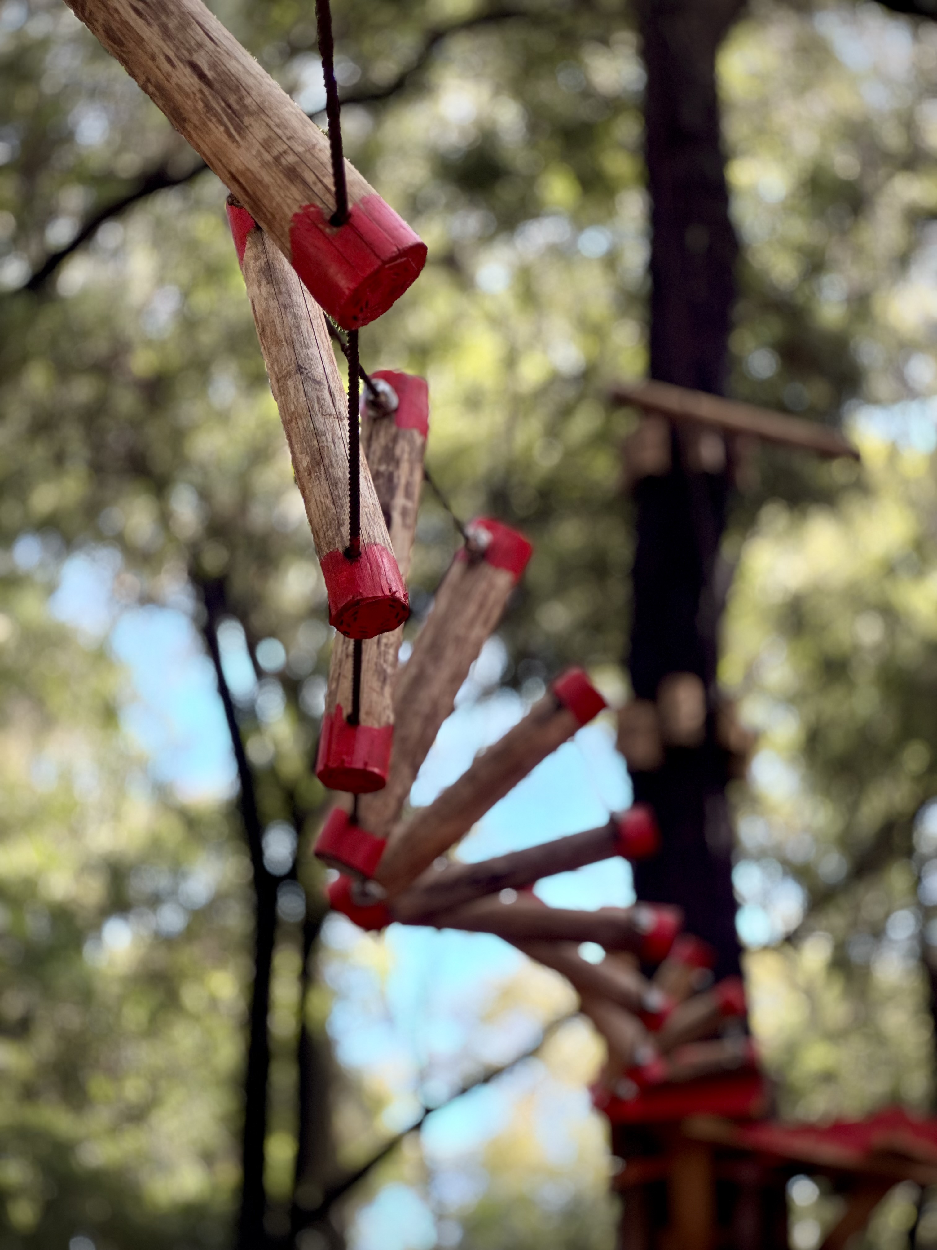 Le parcours Rouge est réservé aux aventuriers dès 9 ans en quête de vrais défis ! Plus aérien, plus haut et plus exigeant, il demande force, équilibre et concentration. Vous y trouverez des ateliers impressionnants : grandes traversées, ascensions difficiles, obstacles mobiles… Parfait pour se dépasser et vivre un moment intense.